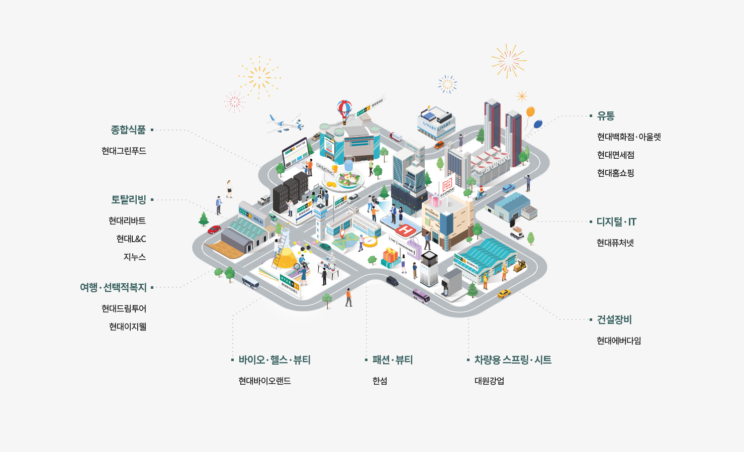 Çö´ë¹éÈÁ¡±×·ìÀº 1971³â ¼³¸³ ÀÌÈÄ, °í°´¿¡°Ô ½Å·Ú¹Þ´Â ±â¾÷À» ¸ñÇ¥·Î À¯Åë»ç¾÷°ú ÆÐ¼Ç, Á¾ÇÕ½Äǰ, ÅäÅ»¸®ºù, ¹Ìµð¾î,
